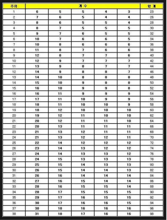 제가 직접 수행해본 결과 위의 주차 훈련대로 진행한다고 하여 27주후에 12kg으로 10 8 6 6 6 의 수행을 할 수 있는 수준까지 올라가는 것은 아니니, 이 또한 마찬가지로 자신의 루틴을 구성함에 있어, 어느정도의 기준으로 삼는 것에 참고하거나, 가끔 자신의 수행능력이 들쭉날쭉 할 때, 목표 루틴으로 삼는 용도로 사용하는 것을 추천드립니다.